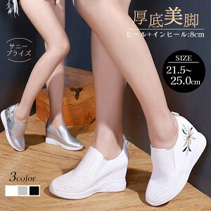 商品名..:*【サイズ有21.5〜25.0】2019秋新作 刺繍 スニーカー イヒール 大きいサイズ 小さいサイズ 厚底 歩きやすい シューズ 通気性イギリス風 スニーカー レディース カジュアル 美脚効果抜群 ホワイト ブク シルバ...