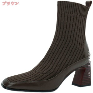 【スなシルエットを実現するニットブーツ】ニット素材のブーツシャフトは、足首とふくらはぎにぴったりとフィットし、美しい脚のラインを生み出します。これにより、脚を細く見せることができ、スタイルアップに貢献します。 【安定した太ヒールで快適...