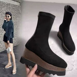【商品番号】853 韓国デザインのストレッチニット切り換えのチェルシーブーツ。 履き口を伸縮性のあるニットで切り換えたソックスみたいなデザインがカジュアルでかわいいマーチンブーツ。 やや長めの丈感で足首をスッキリと...