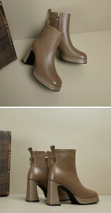 表地:pu、スウェードメイン素材:pu、スウェード● ヒール:約5cm 大人気の太めヒールは安定感があり、約5cmの高さは足のラインがキレイに見せてくれ、歩きやすさも美しさも兼ね備えたショートブーツです。● シンプルでサイドジッパ