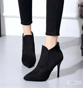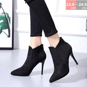 ショートブーツ 痛くない レディース ヒール ハイヒール レース 大きいサイズ 小さいサイズ 疲れない 歩きやすい 走れる スエード ブラック 秋冬 美脚 ショートブーティ ポインテッドトゥ おしゃれ...