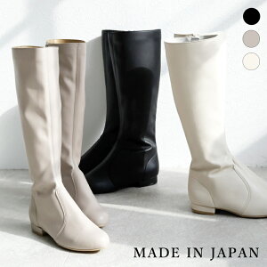 日本製のシンプルなストレッチロングブーツです。 ラウンドトゥの軽量で上品なロングブーツです。 カジュアルになり過ぎない木型の形状がポイントです。 足が細くきれいに見えるラインにこだわりました。 内側にファスナーが付いている