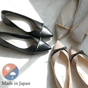 日本製のシンプルなリボン付きパンプスです。 上品なポインテッドトゥの木型を使用しました。 派手過ぎない落ち着いた甲のリボンが魅力です。 履き口は曲線的なVカットになっており、 足が美しく見えます。 本体の素材には防水加工を施