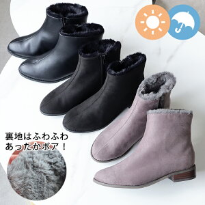 内側全面にフェイクファーを施したシンプルなブーツです。 上品なラウンドトゥの木型を使用した暖かいショートブーツです。 内側全面にフェイクファーが付いているので 寒い冬でもポカポカで暖かです。 本体の素材には撥水加工を施して