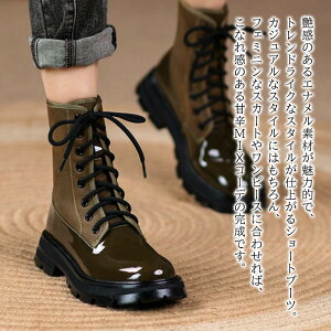 【商品名】エナメルレースアップブーツ【カラー】ブラック カーキ【サイズ】225 23 235 24 245 25【素材】PU【季節】春 夏 秋 冬【スタッフコメント】艶感のあるエナメル素材が魅力的で、トレンドライクなスタイルが仕上がる...