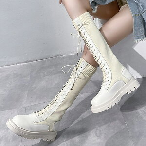 商品詳細 ※記載のないアクセサリー、小物等は付属しません ■カラー:オフホワイト ブラック■サイズ(mm):225/230/235/240/245/250筒丈:37cm ヒール:5cm■素材:PUなど※備考●実寸はメジャー採寸の為、若...