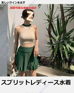 商品名:スプリットレディース水着 カラー:ベージュのトップス+グリーンのパンツスカート サイズ(3)M(体重40〜47.5kg)L(体重47.5〜57.5kg)XL(体重55〜65kg) 特徴:ネック...