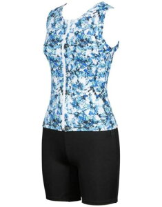 【3L(XXL)サイズ】90 94cm ヒップ98 102cm●カンボジア製●これから水泳をはじめる方におすすめ、セパレートタイプのフィットネス水着。トップスはジッパー付きで着脱が簡単、めくれ防止のスナップボ...