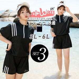 大きいサイズ対応 レディース ぽっちゃり フィットネス水着 3点セット セパレート。■セット内容:トップス|ブラトップ。