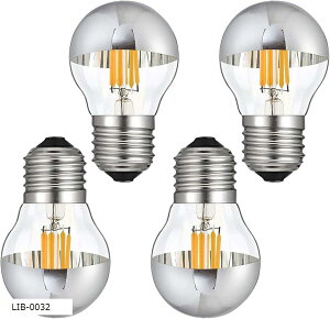 G45 LED 6W白熱電球60W相当 2700K 電球色 装飾電球 おしゃれレトロ カフェ風 E26口金 半分 クロム反射面 レトロ電球 装飾電球 4個入