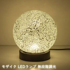 モザイク LEDランプ ボール型 の紹介 モザイクガラスがキラキラ輝くLEDランプ。 無段階調光式で明るさの強弱を調光できます! アンティークの風合いを出すために一つ一つ手作りしています。 リビングのサイドテーブルや寝室のベッドサイド
