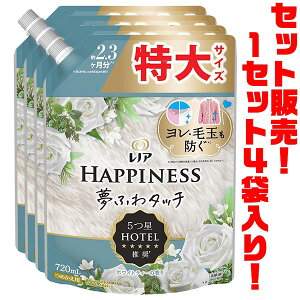 レノアハピネス 夢ふわタッチ 上品で心地よいホワイトティーの香り 柔軟剤 詰め替え 特大(750ml)×4オリジナルティッシュ付き