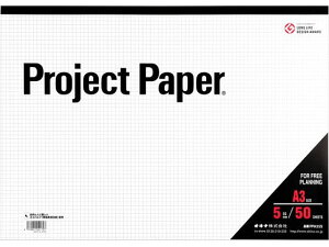 プロジェクトペーパー●サイズ:B4横●仕様:5mm方眼●枚数:50枚●紙質:特抄上質紙64g/m2●注文単位:1冊●デザイナー必須アイテム方眼入りレポート用紙です。