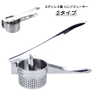 ステンレス製 ハンドジューサー 2タイプ 果物や野菜などの食材を搾って簡単にジュースを作れるジューサー。水洗い可能なのでお手入れも簡単。すっきりしたデザインなので食卓に出しても違和感なく、料理を食べる直前にフレッシュな果汁
