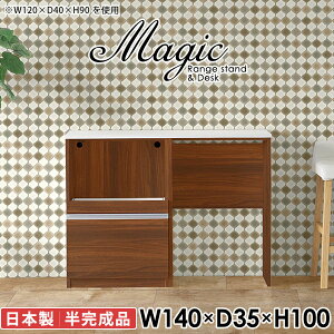 キッチンをスマートに。ゴミ箱収納スペース付きレンジボードmagic レンジ台×作業台 W140×D35×H100 木目サイズサイズ:約幅1400 奥行き350 高さ1000 mm材質[天板・スライド棚...
