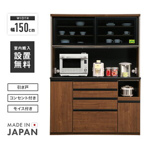 食器棚 レンジ台 キッチンボード 完成品 幅150cm 引き戸 国産 引き出し付き おしゃれ 収納 カップボード 食器収納 レンジボード レンジ収納 家電収納 キッチン収納棚 ダイニングボード