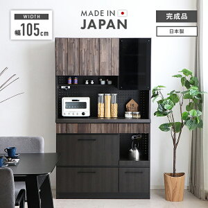 食器棚 レンジ台 キッチンボード 完成品 幅105cm おしゃれ 収納 木製 引き出し付き 国産 日本製 木目調 キッチン収納棚 カップボード 食器収納 レンジボード ダイニングボード