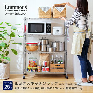 アイテムカテゴリ フリーラック/ホームラック サイズモデル ポール径 25mm/幅90 奥行45モデル/4段 外形寸法 アジャスタ装着時:(約)幅91.5×奥行46×高さ120.5cmキャスター装着時:(約)幅91...