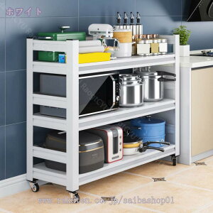 メイン素材:PP☆【サイズ】4段(4層):幅42×奥行32×高さ130cm 【カラー】:ホワイト ブラック☆電子レンジ、トースター、鍋などキッチンアイテムもまとめて収納。上に色々な調味料、キッチン電器が収納できます...