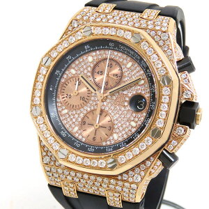 商品名 ロイヤルオーク オフショア クロノグラフ 型番26470OR カラー【文字盤】ピンク/ダイヤ【ケース】ピンクゴールド【ブレス/ベルト】ブラック 素材【ケース】K18PG