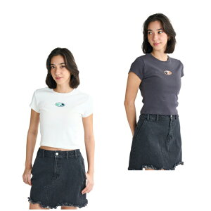 両脇にスリットを入れ、スリットから上の部分にギャザーを寄せた、コンパクトなシルエットがキュートなデザインTシャツ。フロントにはROXYのレイヤードロゴに筆記体のメッセージを重ねたグラフィックをプリントしました。水陸両用で、
