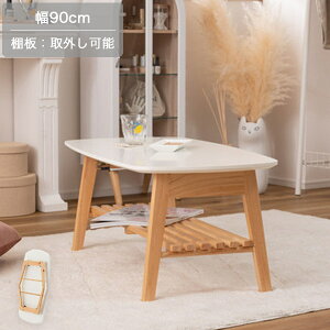 ■商品説明組み立て不要で、すぐに使える折り畳みセンターテーブルです。天板は斜め加工のエッジを活かしたデザインです。清潔感のあるホワイトの天板とやわらかな木目の脚がかわいいバイカラーです。天板には熱、水、傷に強いメラミ