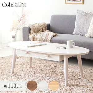 木目が美しい天然木の突板を使用した天板と、 両側から取り出せる引き出しが特徴のオーバル型センターテーブル『Coln(コルン)』。 幅110cmと、ノートパソコンや本を広げられる広々としたワイドな天板。 収納力のある引き出しにはリモコ