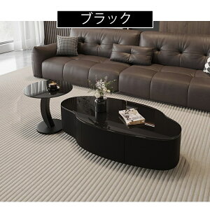 洗練されたシンプルなデザインの引き出し付きローテーブル【オーバルタイプ】 両面から取り出しが可能な引き出しが2杯付いているので、 リモコンや筆記用具、メガネなどの小物などを収納でき...
