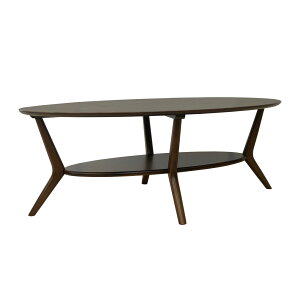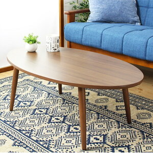 おしゃれでかわいいオーバルデザインの木製リビングテーブル、アビレ。 天板はぬくもりを感じる木目柄で、北欧テイスト溢れる雰囲気。