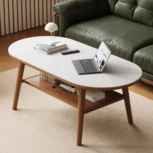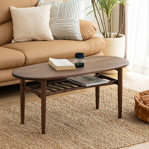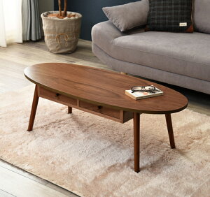 おしゃれでかわいいオーバルデザインの木製リビングテーブル