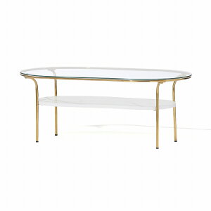 !耐荷重100kgで日常使いも安心。 【モダンでおしゃれなデザイン】 滑らかな強化ガラスを使用した楕円形の天板は、クラシックとモダンが融合。 透明ガラスがソファや床、ラグを美しく引