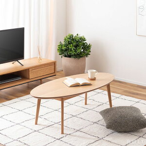 商品内容おしゃれでかわいいオーバルデザインの木製リビングテーブル、アビレ。天板に木目の美しい天然木突板を使用し、北欧テイスト