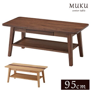 無垢 テーブル 95 cm ローテーブル 四角 長方形 ウォールナット オーク リビングテーブル センターテーブル 北欧 モダン コンパクト 棚 引き出し付
