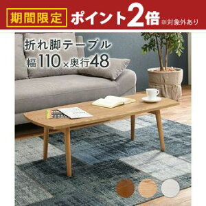 天然木の木目を楽しむ折れ脚テーブル。熱や傷に強いUV塗装仕上げ。幅110cm ○カラー:ナチュラル(NA)、ブラウン(BR)、ホワイトウォッシュ(WS) ○サイズ: (約)幅110×奥行48×高さ35cm ○素材:天板:MDFタモ突板...