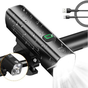 大容量・USB充電式:大容量2500mAhバッテリー内蔵のUSB充電式自転車ライト。Type-C充電、高速充電、約3時間でフル充電。長いバッテリー寿命、フル充電で最大13時間の連続照明を提供できます(明るさモードによって異なります) ...