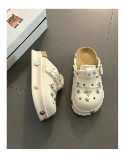 サンダル スリッパ 厚底 4CM サンダル ローファー レディースシューズ かわいい おしゃれ 黒 白 かわいいデコレーション