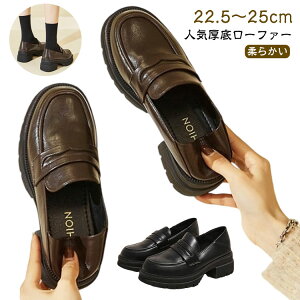 厚底ローファー 22.5−25cm 2色履きやすくてシンプルなデザイン。スクールローファー、学生ローファーとして学生さんにはもちろん、フォーマルなスタイル、オフイスにも最適なローファー。滑りにくい、摩...