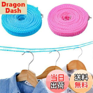 【商品詳細】洗濯ロープ2本入。長さ:約5m伸長◆材質:ステンレスフック+ナイロンロープ◆色:ピンク+ブルー。 【丈夫で長持ち】このタイプの物干しロープは、丈夫で耐摩耗性があり、老化しにくく、耐荷重力が高く...