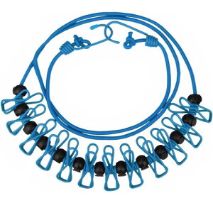 クリップ付きのランドリーロープが新登場。 両端のフックに引っ掛けるだけで、濯物やを吊るすことが出来ます。 弾力性の高い丈夫なゴムなので、気軽に吊るせます。 下着、ネクタイ、靴下、マフラー等の衣類や、アウトドアシーンでマグ