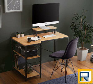 ヴィンテージテイストのL字 パソコン デスク!お部屋のレイアウトに合わせて、棚位置を変更できるリバーシブルデスク!天板はリアルな木目を再現しています!長時間のデスクワークにも最適な卓上ラックでモニターへの目線も上がります