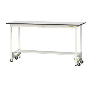 《仕様》●サイズ:W1800×D600×H950mm●天板:塩ビシート貼り●ワンタッチキャスターセット(75Φ自在ゴムキャスター4個付)、半面棚板1枚付●半面棚板(W×D):1574×211mm●全体...
