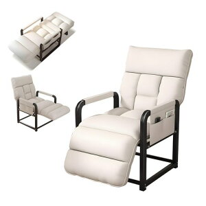 【5段階リクライニング機能】人間工学に基づいた設計で、背もたれ角度を90~180°の間で5段階調節可能。足置きも5段階調整でき、お好みの姿勢が選べます。 【スマートデザイン】アームレスト収納ポケット付きで、本やスマホを収納可能。ジ