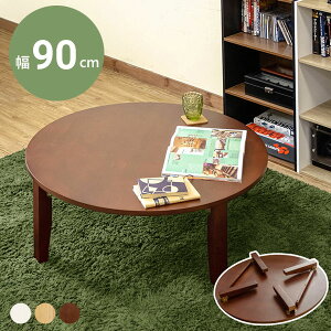 天然木を使用した直径約90cmの丸テーブルです。 完成品で余分な手間もかからず、届いたらすぐにお使いいただけます。 使わない時は脚を折り畳んでお部屋の隅や家具の隙間へ収納できます。 レバーを引きながら内側に倒すだけです。 脚裏