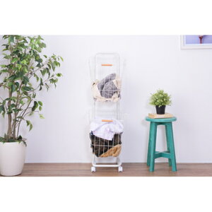 ニュアンスカラーを取り入れて理想のランドリールームに! 6カラーから選べる幅広いバリエーションが魅力♪ 少ないスペースで洗濯物を分別できる、タテ型2段式ランドリーラック。 複数のバスケットで色柄物と白い服など洗濯物を分別し