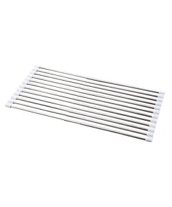 伸縮水切りラックの解説 シンクに渡して水を切ることができるラック。シンクに合わせて28〜45cmまで伸縮可能。使わないときは丸めて収納可能。 ●本体はステンレス製でサビにくいため水まわりに適しています...