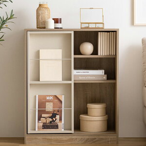 カラー表面材/プリント化粧合板カラー/ライトブラウン・ホワイト生産国日本用途本棚 書棚 収納棚 ・可動棚は好みの高さに6cmピッチで調節出来ます。 ・小物の収納に便利な小引き出し付き