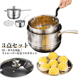 ・IH・ガス火対応!ストレーナー付きマルチポット ・ストレーナー付きでもっと便利! ・中の様子が確認しやすいガラス蓋です。 ・ストレーナーで一気に揚げ物を引き上げられるため、時間差による揚げムラを防ぐことができます。 ・茹で