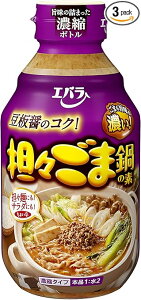 エバラ 担々ごま鍋の素 300ml×3 ごまの風味豊かな、本格的な担々鍋が手軽に楽しめます! 鶏がらスープの旨味とねりごまのコクが絶妙にマッチ。 豆板醤のピリ辛が食欲をそそります。 寒い冬にぴったりの...