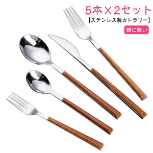 【5本×2セット】【ステンレス製カトラリー】【錆に強い】上質なステンレスを採用し、高級感があり、テーブルに並んでるだけで食卓が華やかになり、いつもの料理が3割増しで美味しく感じられます。エレガントで美しいデザイン:木目調