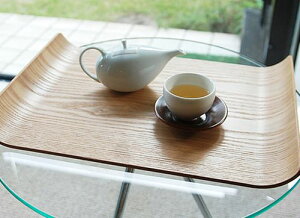 【北海道・沖縄・離島配送不可】 商品説明 ●表面に滑りにくい加工を施したカーブのフォルムが美しいプライウッド製のトレイです。 ●持ち運びしやすい縁の幅と高さ、テーブルに置いたときは省スペースになるよう設計されたスリムなデ